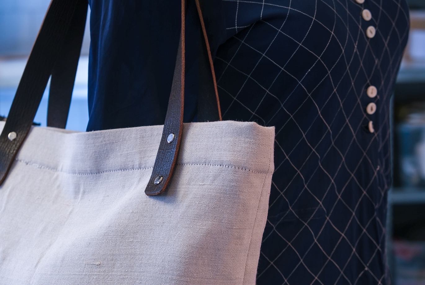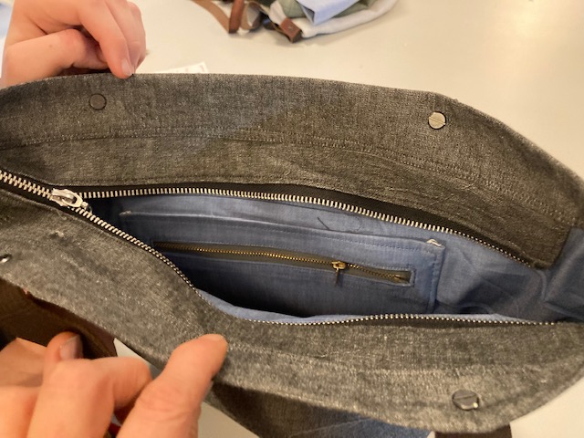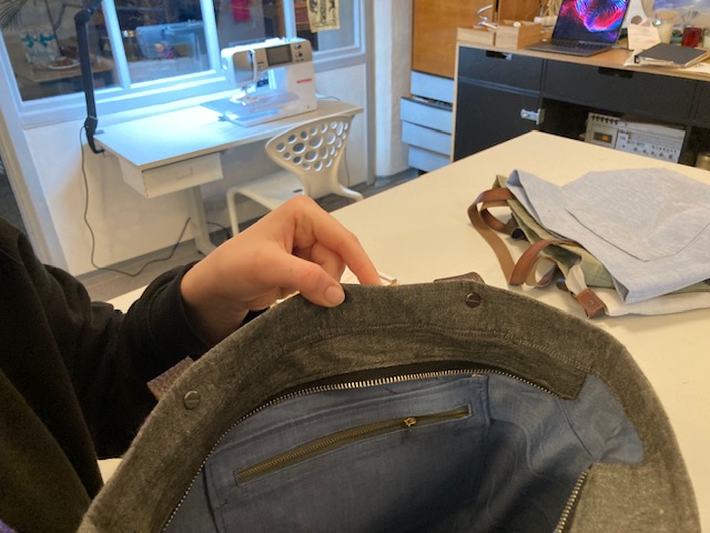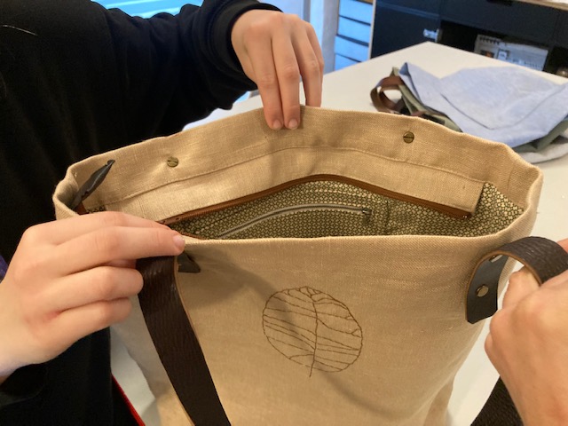 Nakonec připevníme kožená ucha. Použijeme speciální šroubovací nýty, které vám umožní ucha kdykoliv sundat a tašku pohodlně vyprat.